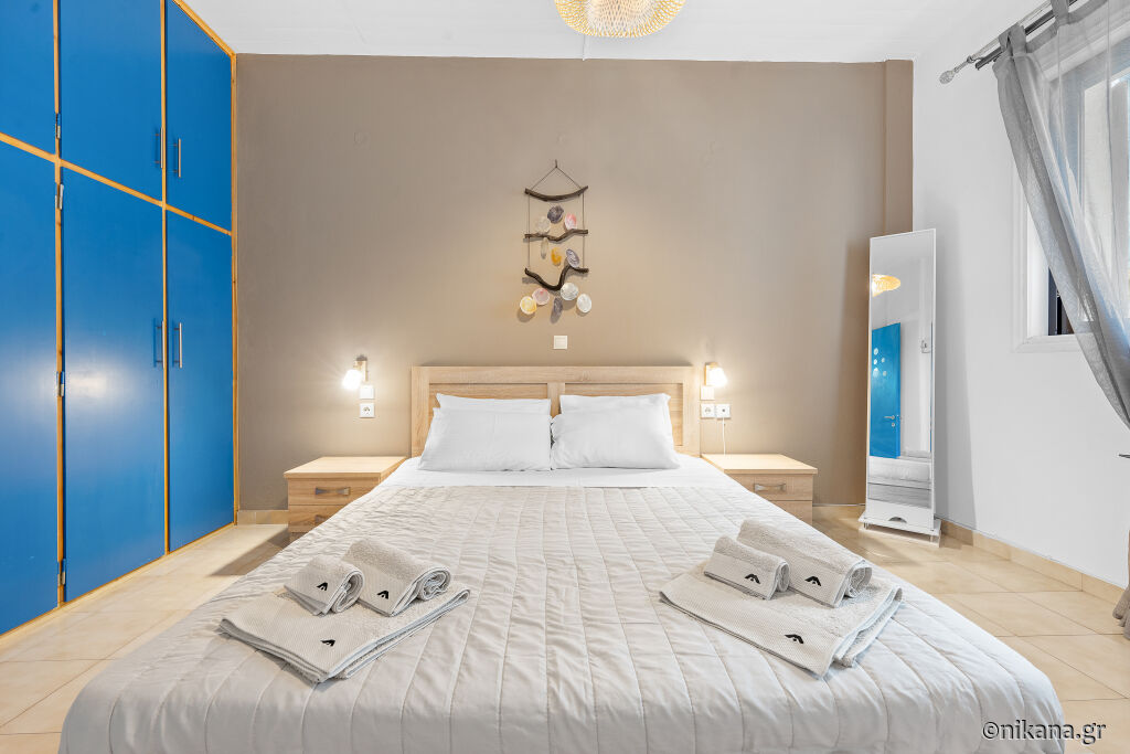 SeaVista Nikiana Apartment is situated in a small fishing village on the eastern coast of the island of Lefkada, Nikiana, at the foot of Mount Skaros, a place that offers all the amenities necessary for a peaceful family vacation. This modernly equipped and spacious accommodation, with direct access to the beach, is an ideal choice for relaxation and enjoyment.