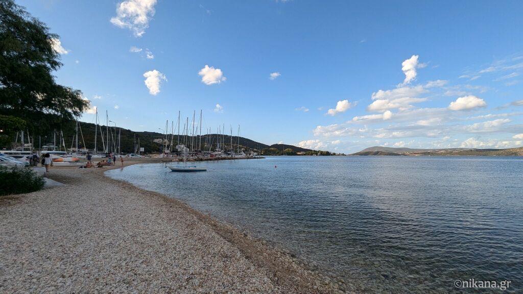 Nikiana is a lovely fishing village, increasingly popular in recent years, but still suitable only for tourists who prefer peaceful holidays. It consists of one street that goes along the highway and in which are located several shops and a restaurant, and a small port with a numerous sailing boats, several restaurants and cafes. The beach is narrow and gravel (large pebbles) and it may serve well during the holiday, but certainly it’s not the reason why you should come to visit Lefkada. The sea is clean, but it’s not turquoise like on the west coast. There are bus lines from Nikiana to all parts of Lefkada, and there are excursion boats to the islands Skorpios and Meganisi.
