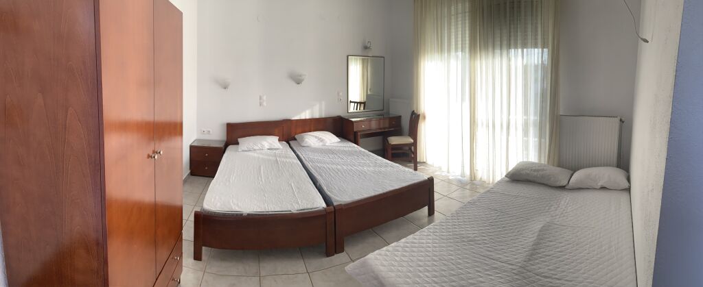 Stella’s House is an accommodation in Paradissos area, in Neos Marmaras, near the popular beach awarded with the Blue Flag. It’s regularly maintained and offers bright and neat rooms equipped with everything that’s necessary for a quality holiday. It’s situated on a quiet location surrounded by greenery, outside the busy streets, crowds and noise, it has an arranged courtyard for socializing, enjoying and relaxing, as well as a covered and secure private parking.