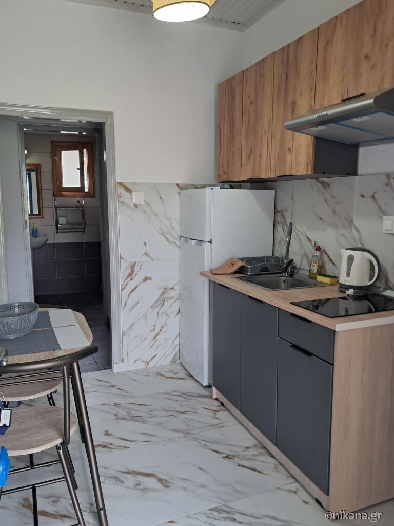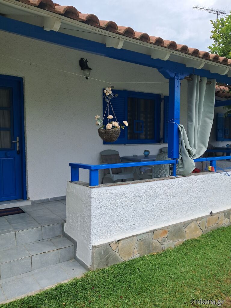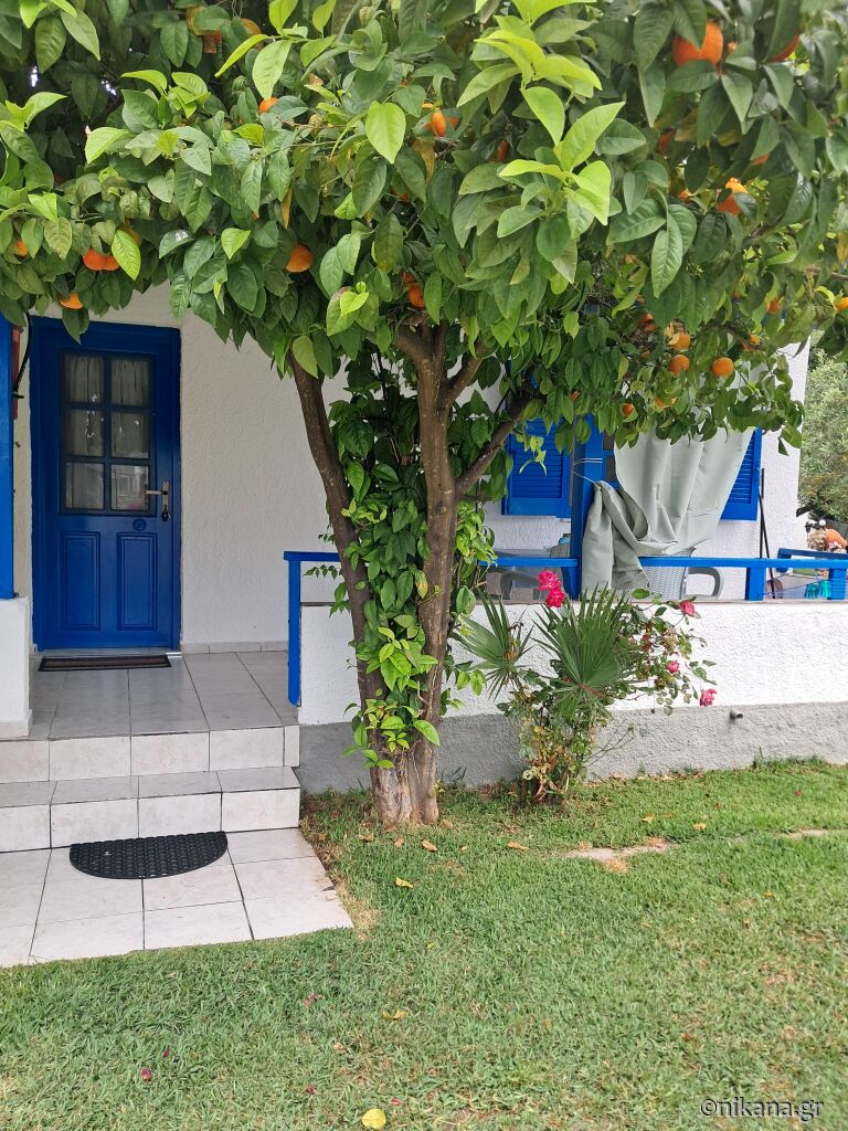 After passing the Baracuda bar coming from Neos Marmaras, turn left into the first street and after 200 meters, you will see Sophia House on the right side in the spacious yard.