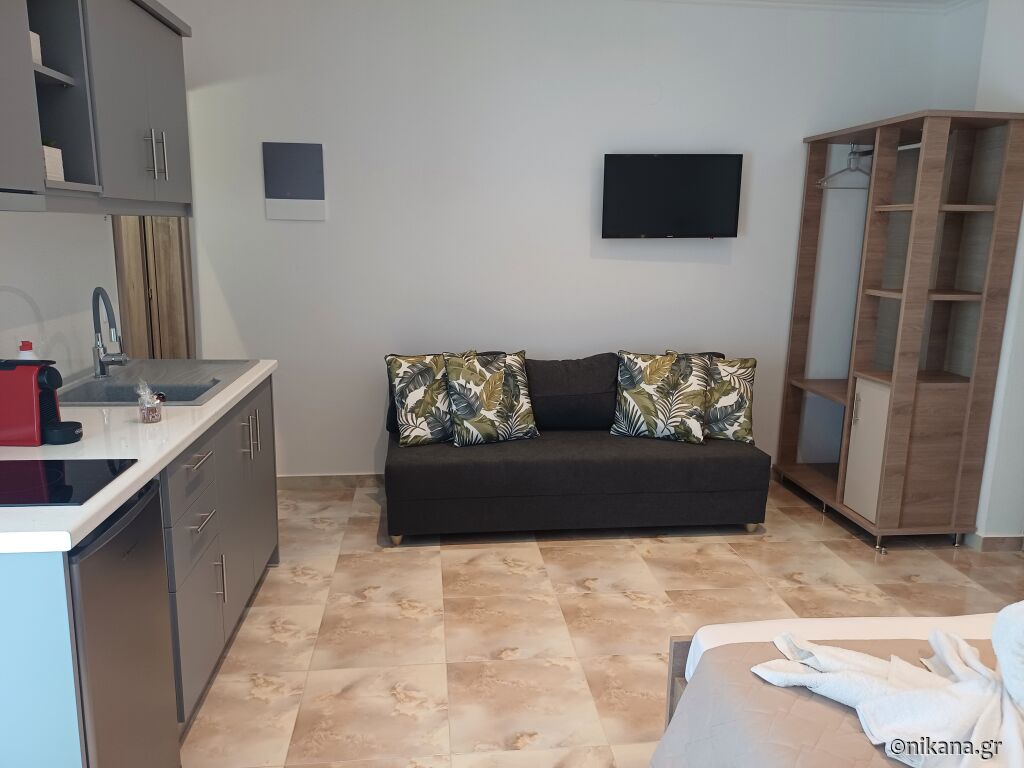 Summer Paradise Studios is located in the south of beautiful Sithonia, in a peaceful location, just outside the village of Sykia. The surroundings offer a relaxing atmosphere, away from the hustle and bustle of the city. Pleasantly furnished studios offer the possibility for a peaceful, fulfilling holiday. This can be a great starting point for exploring the southern part of this increasingly popular peninsula. The nearest beach is Sykia beach at 1km, while Klimataria beach is 3.8km away.