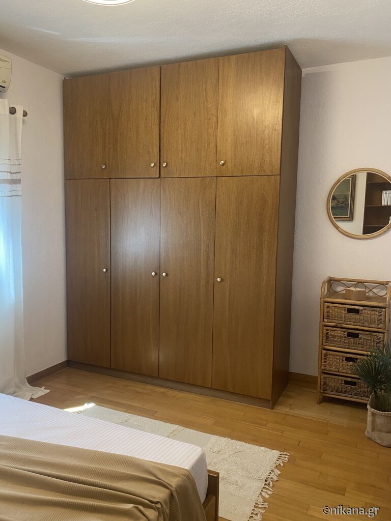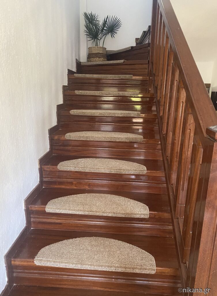 Villa Nostos also features a spacious balcony furnished with a comfortable seating set, making it an ideal spot for a morning coffee, evening conversations, or quiet moments spent gazing at the starlit sky. In addition, the villa offers access to a private veranda on the elevated ground floor – a perfect setting for shared meals or evening relaxation accompanied by the soothing sounds of nature. From the veranda, guests can enjoy a view of the well-maintained, fenced garden, filled with greenery and designed to provide a safe and carefree environment for children. The garden is equipped with toys for the little ones, while a cozy shaded seating area stands out as an ideal place for family gatherings and outdoor dining. There is also a barbecue available, perfect for preparing fresh local delicacies in the laid-back atmosphere of the garden.