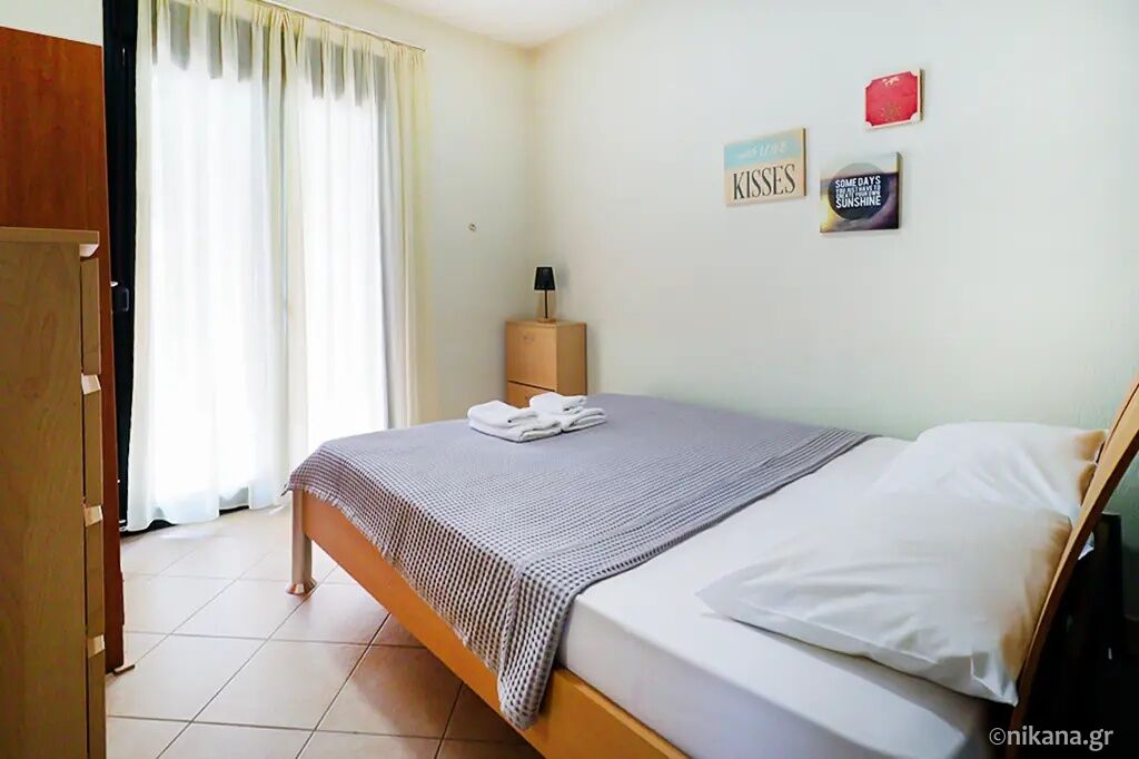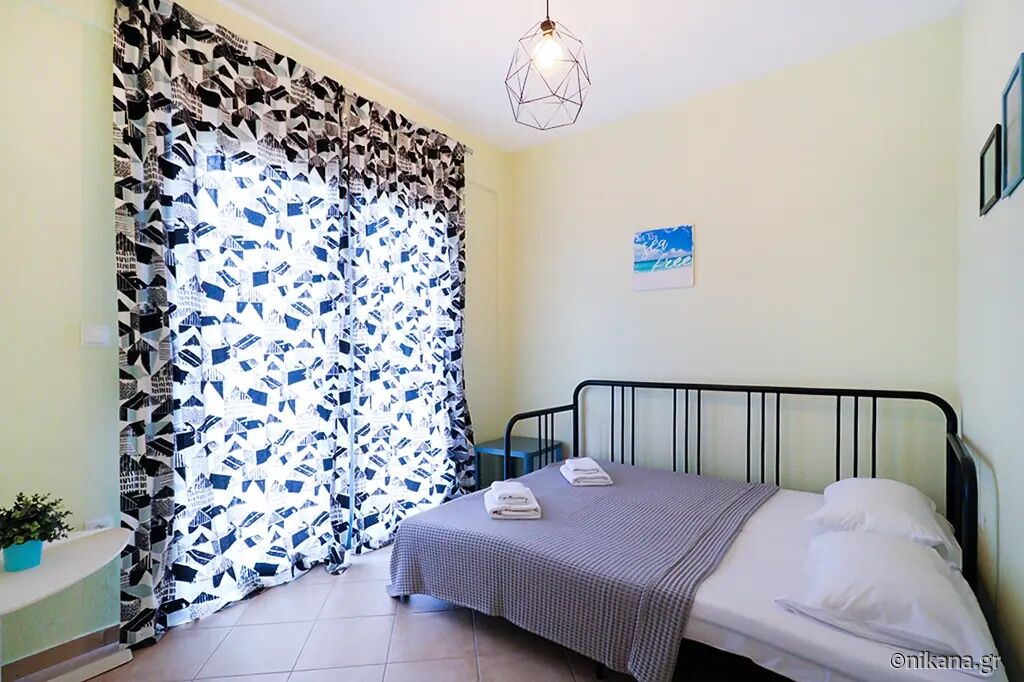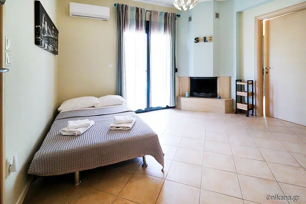 Ifestos House is a two-bedroom apartment, located on the ground floor of the building and designed for a maximum of six adults and one child. The room layout has been carefully designed to provide guests with comfort and enough space for communal living, as well as privacy. The apartment consists of two separate bedrooms, a living room with a kitchen, and a bathroom. Both bedrooms are equipped with double beds. The living room features a sofa bed suitable for two people, while an additional extra bed for a child can be added upon request. This structure makes the accommodation flexible and suitable for various types of guests, including families and groups of friends. The interior of Ifestos House is designed in a warm and pleasant Mediterranean style, with an emphasis on functionality, comfort, and a sense of homey atmosphere. The space is bright and airy, with carefully selected furniture and neutral tones that contribute to a relaxing atmosphere during the stay. The living room and kitchen form a harmonious whole, ideal for socializing, while the bedrooms are decorated simply but comfortably, providing peace and privacy. The overall interior leaves an impression of neatness and practicality, making this accommodation very suitable for both short and long stays.