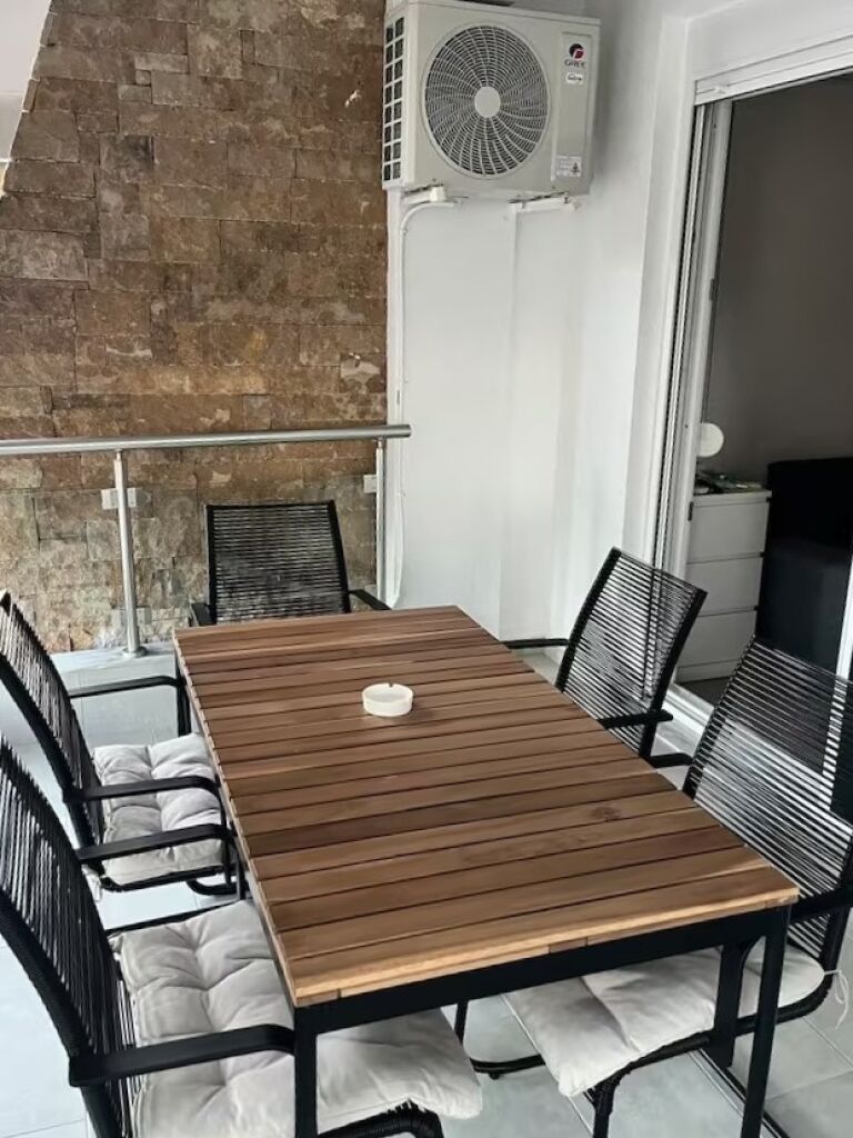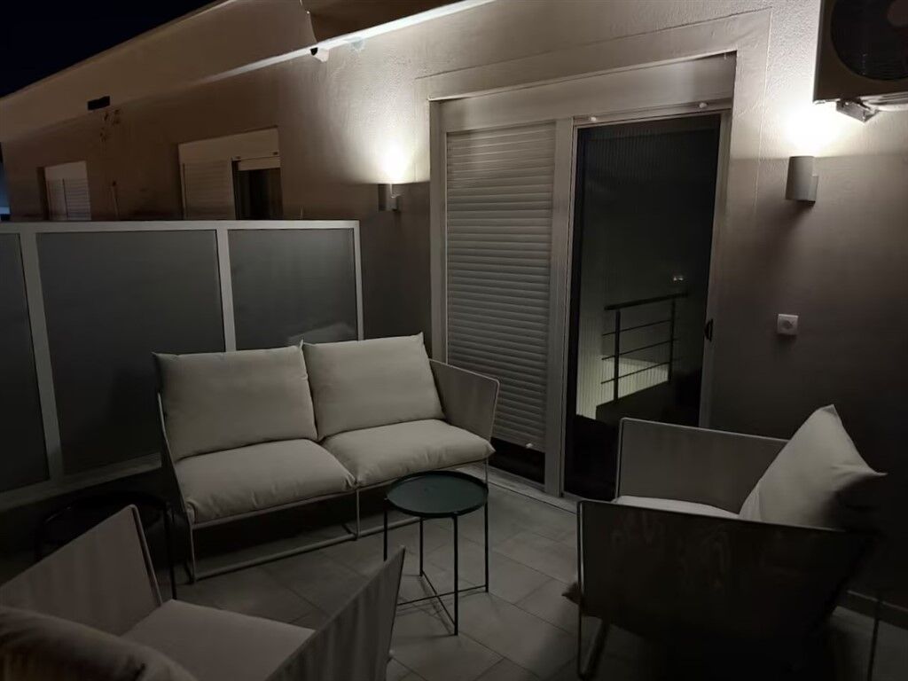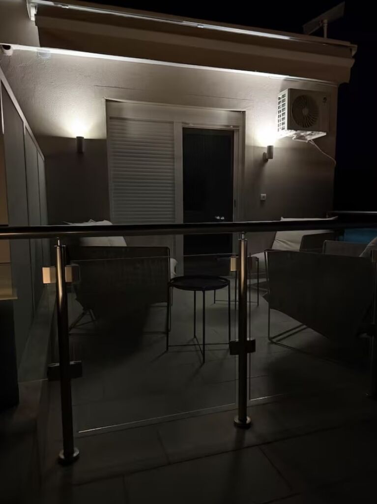 Guests can relax on one of the two balconies furnished with outdoor seating, one on each floor. One balcony offers a street view, while the other provides a pleasant distant sea view, creating the perfect atmosphere for relaxation throughout the stay.