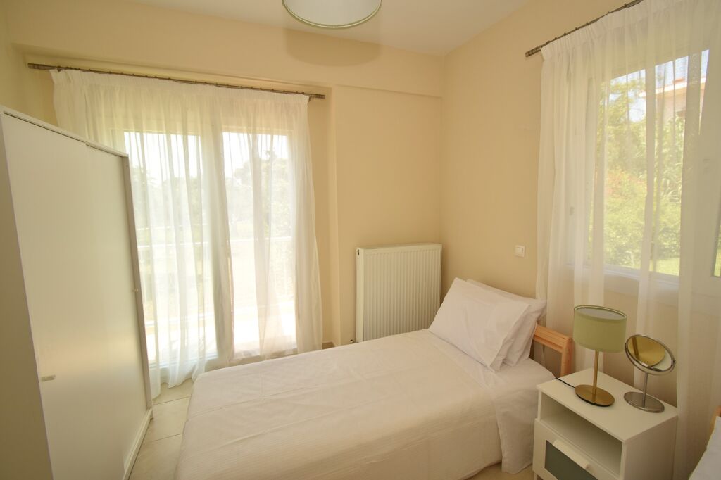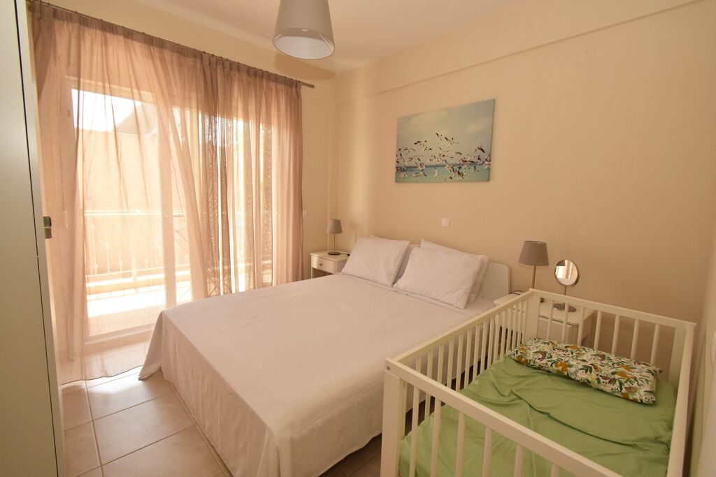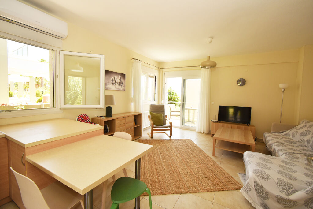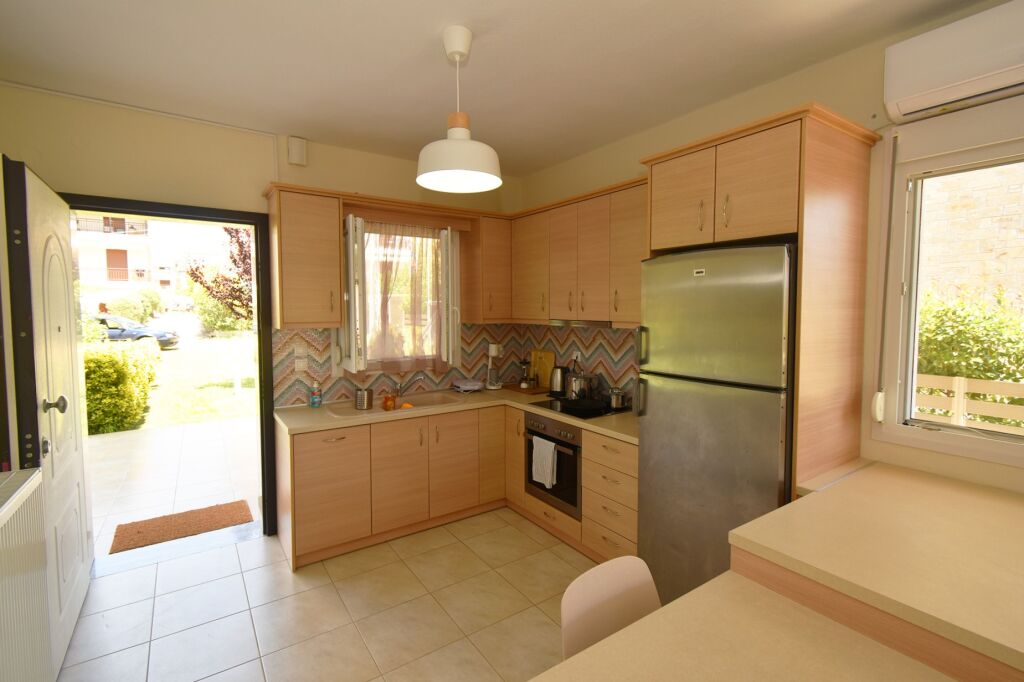 Lemon Sea Side 2 Apartment is located in a quieter part of Nikiti, just 40 meters from the sandy shore. The apartment’s position is ideal for those seeking immediate proximity to the sea while remaining away from the busiest tourist zones, ensuring a more peaceful stay. Thanks to its excellent location, guests are only a few steps from the beach, while all key amenities of the town are easily accessible, making this accommodation a practical choice for a relaxed family holiday.