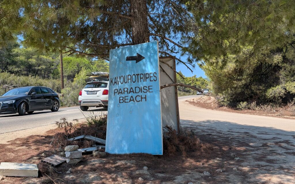 When driving from Vourvourou to the south, Kavurotripes Paradise is located in front of Mega Portokali Beach. A board towards the beach was also installed on the extension next to the main road. A dirt, dusty road leads you to the beach, which you can drive in some parts for only 20 per hour. There is a parking extension at the end of the road, but you can also park along the road. If you drive from Sarti towards Vourvourou, you first come across the Orange (Portokali) beach, and after 8 km you turn towards the Kavurotripes Paradise beach.
