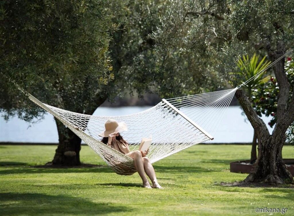 Paradise Lagoon Villa is located just outside the village of Porto Koufo, 2.3 km from the center and approximately 600 m from the beach, making it an ideal choice for guests seeking peace and privacy. The property is surrounded by a lagoon, hills, and lush greenery, creating a unique natural oasis perfect for complete relaxation. It is an exceptionally quiet place, far from crowds and noise, ideal for unwinding throughout the entire season. The spacious yard allows guests to enjoy the outdoors, and it provides direct access to the pier. At the pier, there is a small boat that guests are free to use for exploring the lagoon. The villa is modern and beautifully decorated, with carefully selected details that enhance comfort and create a pleasant atmosphere.