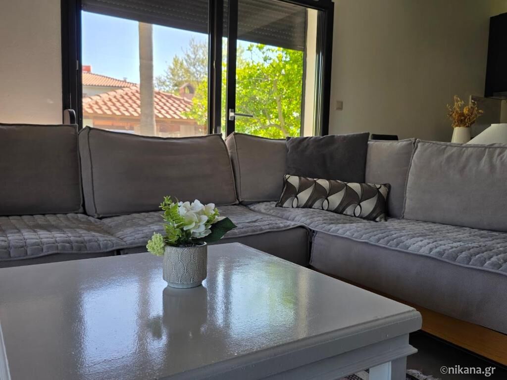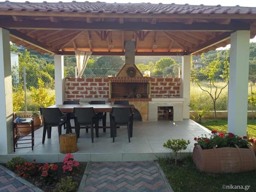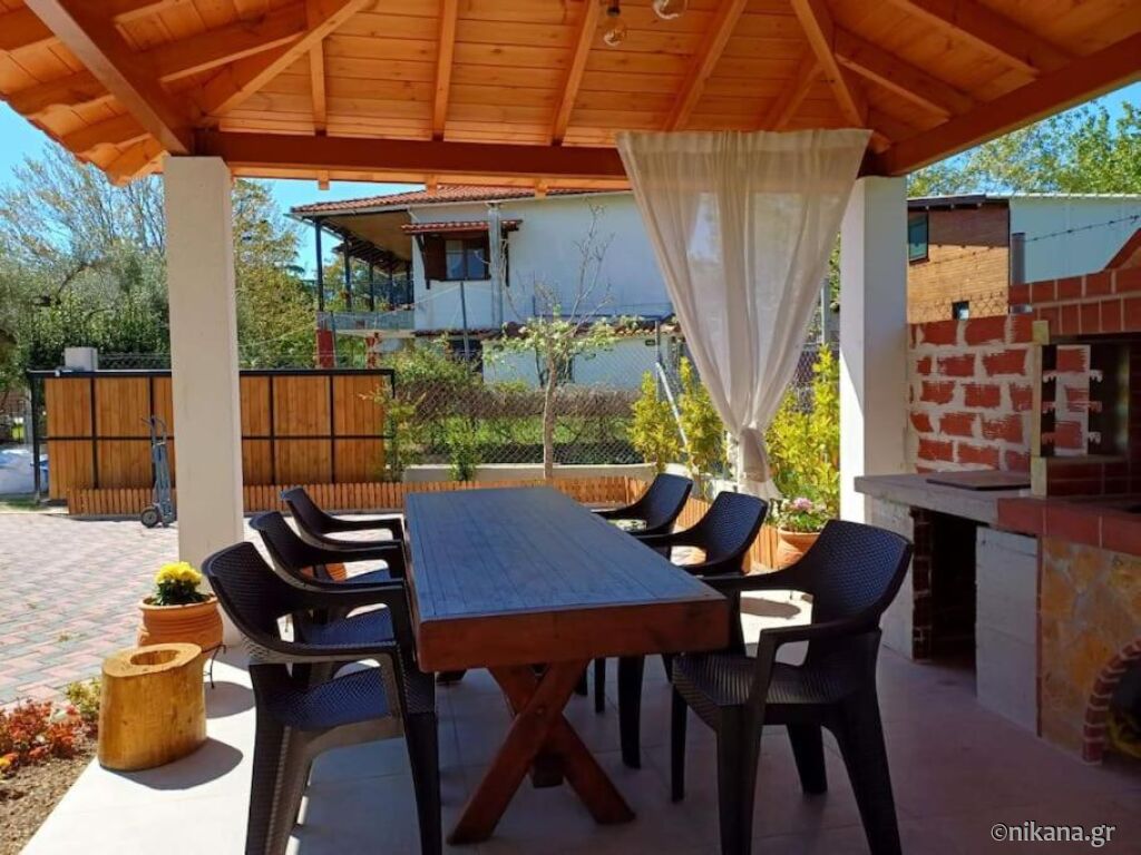 Panagia Villa is located in the peaceful fishing village of Ormos Panagias, on the eastern coast of Sithonia, just 400 meters from the beach and 2 km from the port. This accommodation represents a perfect choice for families, thanks to the spacious courtyard, gazebo ideal for enjoying a barbecue, and secure private parking, available to guests throughout the year.
