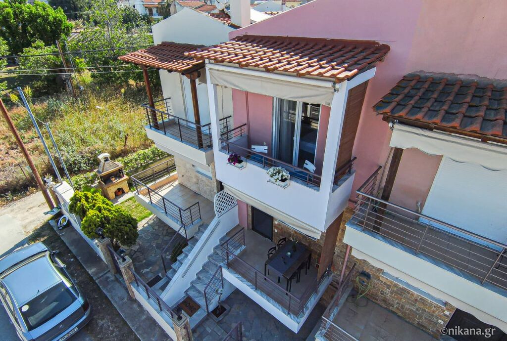 Jessi’s Villa is located in Nikiti, one of the most beautiful and developed places on the Sithonia peninsula, known for its combination of natural beauty, traditional architecture, and modern tourist spirit. Situated just 400 meters from the beach, this elegant three-level maisonette offers full comfort and an unforgettable stay on Halkidiki. Thanks to its spaciousness, modern amenities, and pleasant atmosphere, it is the perfect choice for large families, two families vacationing together, or a group of friends looking for privacy and comfort in one of the most sought-after resorts in northern Greece.