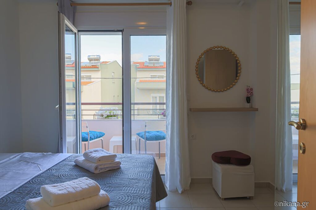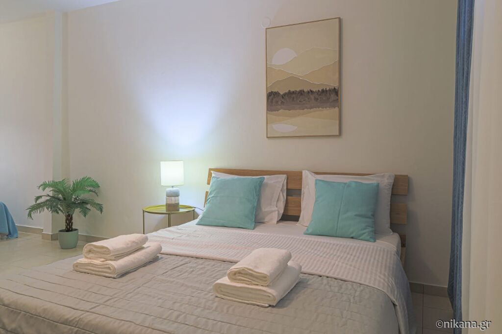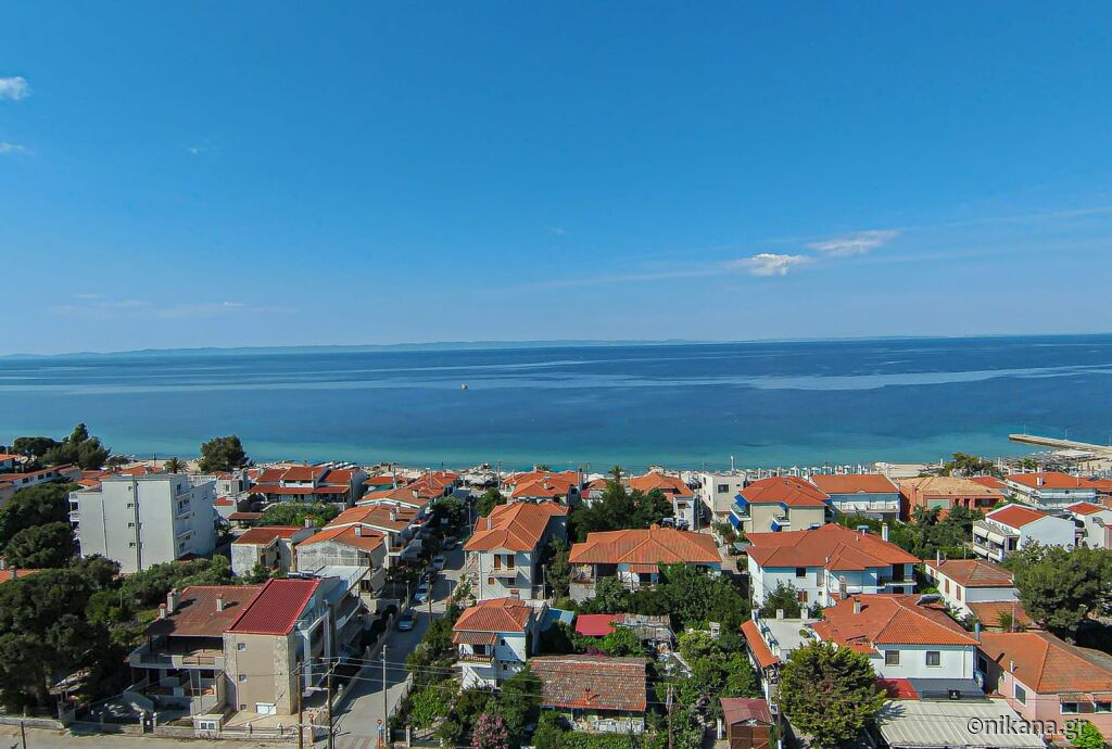 As for its location, Jessi’s Villa is situated in Nikiti, a town divided into the old and new part and one of the most visited and developed resorts on Sithonia. The new part stretches along the coast and is famous for its beautifully designed promenade lined with modern bars, restaurants, pastry shops, and tavernas, as well as various amenities for children. The town beach is clean, well-maintained, mostly sandy, and particularly suitable for families with young children due to its shallow waters. Nikiti is a relatively new tourist destination with a large number of newly built rental properties and is home to about three thousand permanent residents. The old part of Nikiti, located uphill about two kilometers from the beach, exudes traditional charm with its stone houses and cobbled streets. There you’ll find the Church of Saint Nikitas and many authentic tavernas. Nikiti is also known for the Sofronios Basilica from the 5th century, one of the oldest Christian churches in the region of Macedonia. Nature and food enthusiasts can explore local wineries, visit the open-air market held every Friday, and enjoy the rich variety of local honey, as Nikiti has been a major honey-producing center in Europe for over 600 years. The area surrounding Nikiti is home to some of the most beautiful beaches in Sithonia, such as Koviou, Kalogria, Spathies, Elia, and Karidi. Thanks to its convenient location, Nikiti is the perfect base for exploring both the western and eastern coasts of Sithonia. Just two kilometers from the center, the main road splits, providing quick access to both sides of the peninsula, where visitors can discover secluded coves, picturesque fishing villages, and lush pine forests. The nearest airport, Thessaloniki’s Macedonia Airport, is about 80 kilometers away, making travel to and from the villa easy and efficient for both domestic and international guests.