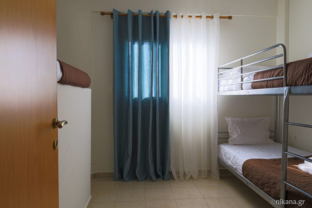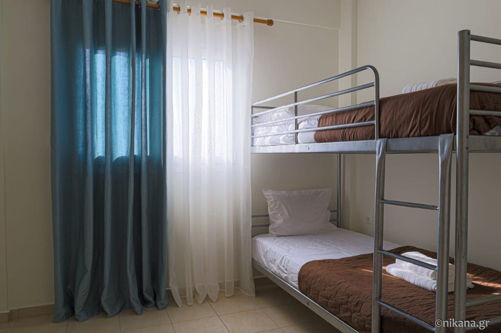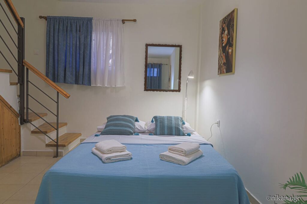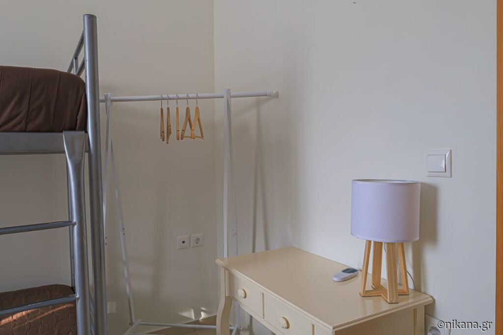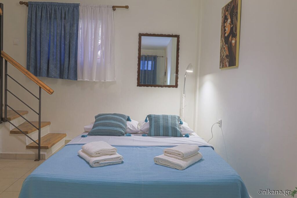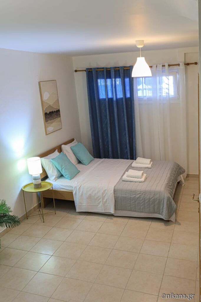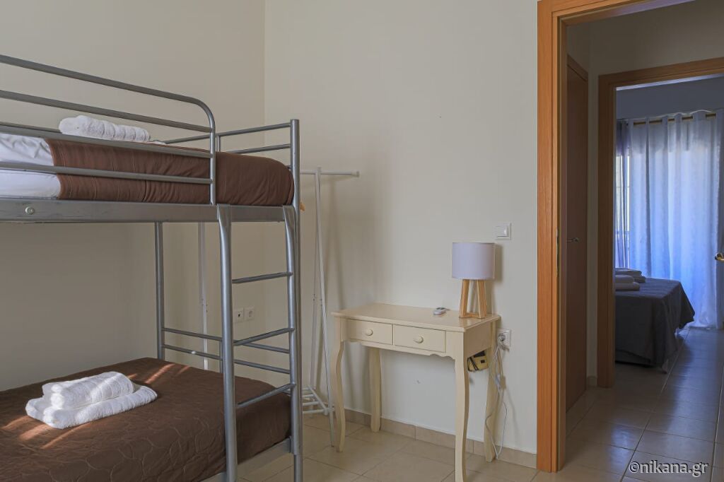 Jessi’s Villa is organized as a three-level maisonette and can comfortably accommodate up to eight adults. It consists of a basement, a raised ground floor, and a first floor. In the basement, there is an open sleeping area with a double bed and a sofa, as well as a bathroom. On the raised ground floor, there is a bright and modern living room, along with an additional bathroom. The first floor features two separate bedrooms and a third bathroom. One bedroom is equipped with a double bed, while the other has bunk beds and one single bed. All rooms are well distributed and connected by an internal staircase, with plenty of natural light and an airy feel throughout the house.