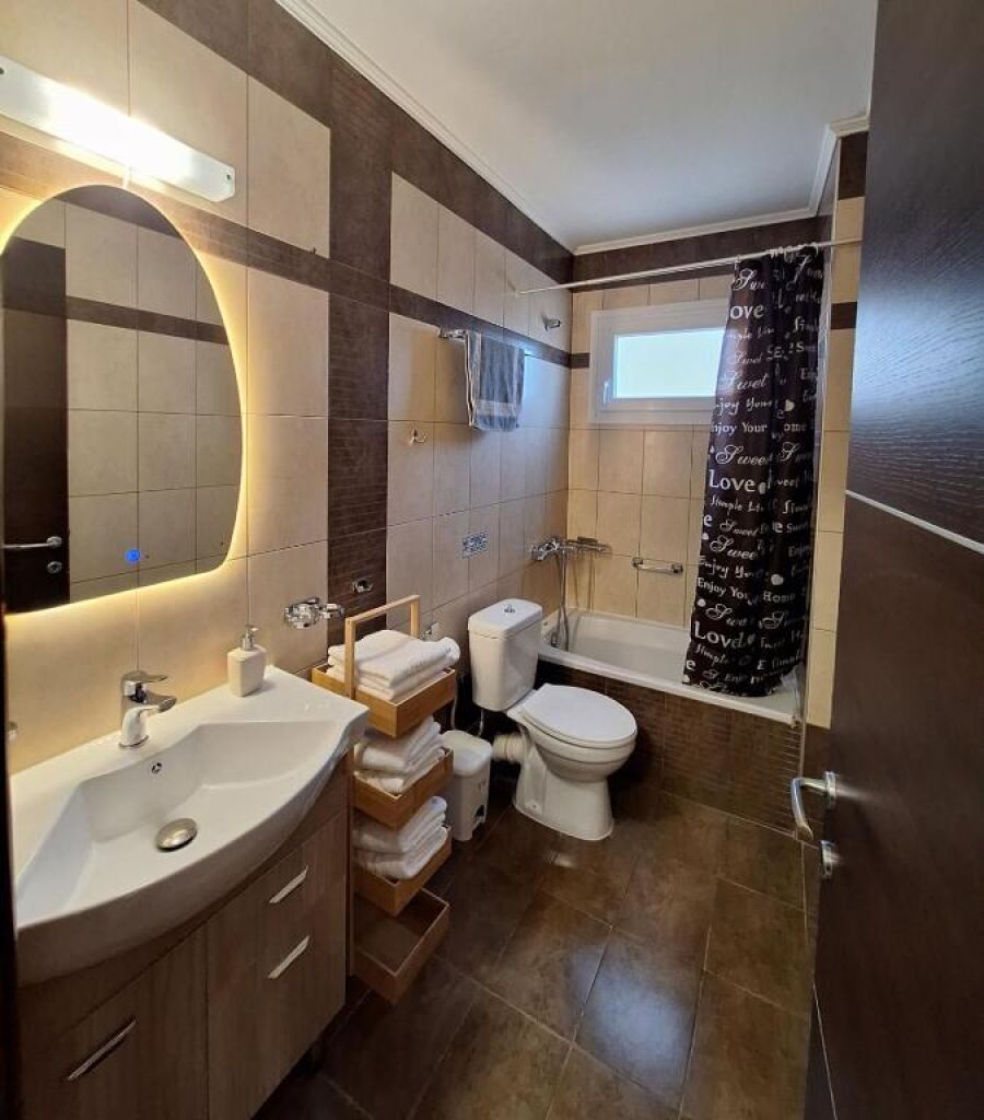 The lodging is located just 80m away from the municipal beach and the town center where taverns, shops, a pharmacy, butcher, and bakery can be found.