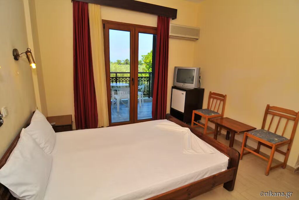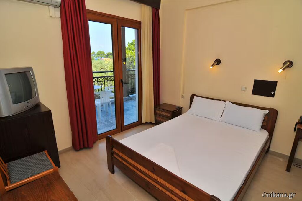 Coral Hotel is located near a beautiful part of the beach in Skala Rachoni. It takes up a lot of space, so parking and the yard are just as spacious. The pool is nice, as is the bar next to it, away from the hotel building, so the noise can not disturb the guests. It has enough content for smaller and bigger children. The great advantage of this hotel is that it is close to the largest supermarket on the island.