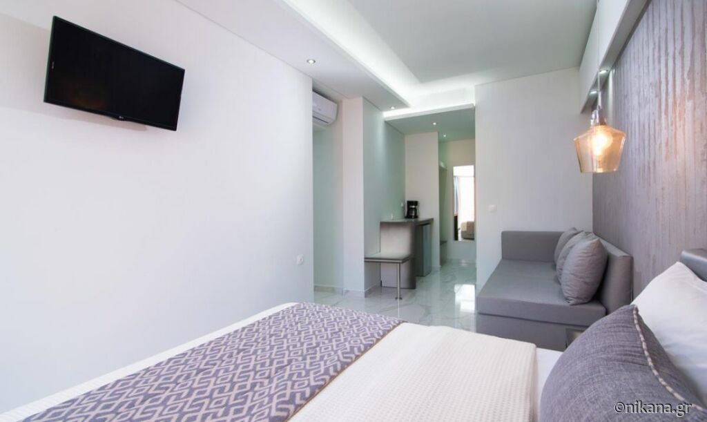 Molos Hotel is a renovated hotel in the south of the island of Thassos, in the town of Limenaria. It is located directly on the promenade, just a few minutes’ walk from the beach, numerous shops and cafes, making it an ideal choice for those looking for modern accommodation in a good location. There is a restaurant within the hotel, run by the same owners.