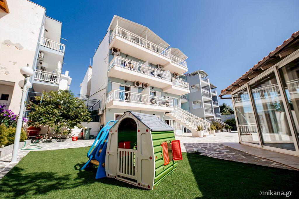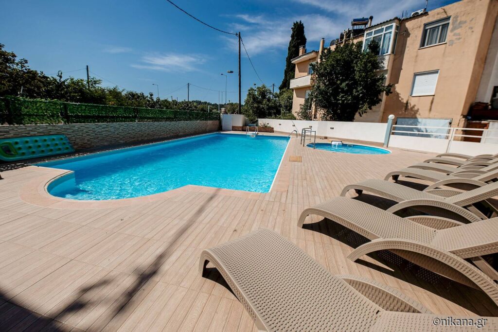 If you’re fine about the prices, this hotel is ideal in terms of location, as it is in the heart of the town, at a quiet place and very close to the beach. Such sites are most desirable in Potos, because it is difficult to find accommodation that is in the center, yet sheltered from the noise and traffic and with courtyard and pool.