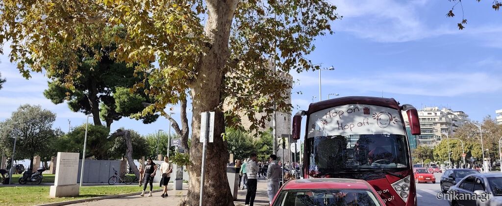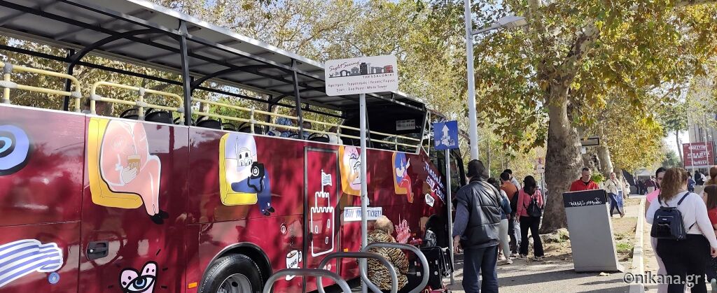 The starting point of the bus is at the White Tower (behind the tower when viewed from the sea), where there are kiosks where you can buy tickets. The tower is a symbol of Thessaloniki, a fortress from the 15th century that was once part of the city walls and defense system. Today, it is a recognizable landmark of the city and a museum you can visit. Detailed description and museum hours: White Tower of Thessaloniki: from a former prison to today’s museum