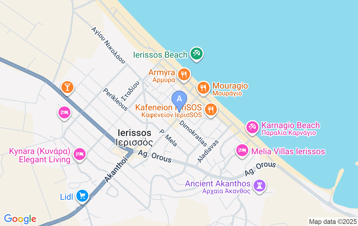 Petros Apartments - The Palms, o construcție nouă, primesc oaspeți din iunie 2023 și se află pe strada centrală Jerisos, care duce spre port și se află la doar 210m de plajă.