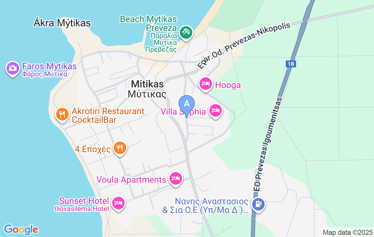 Hotel Fotini se află în localitatea Mitikas, la 3km de Preveza și la aproximativ 250m de plaja cu nisip. În cadrul hotelului se găsește un parcări privată pentru toți oaspeții, o recepție pentru orice asistență sau informație și o curte amenajată cu seturi de mobilier pentru relaxare.