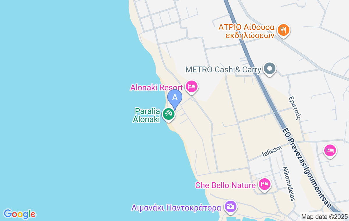Cea mai apropiată brutărie și magazin se găsesc în centrul așezării, la aproximativ 500m de hotel. Centrul Prevezei este la aproximativ 2km distanță.