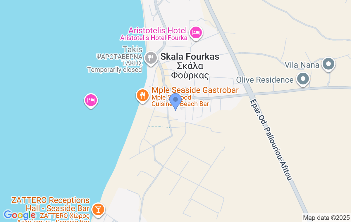 Roxani First Line Apartments se află în liniștita localitate de coastă Skala Fourka, la doar aproximativ 80 de metri de plaja cu nisip, ceea ce îl face o alegere ideală pentru o vacanță de vară liniștită și relaxantă. Datorită poziției sale excelente, oaspeții se pot bucura cu ușurință de apropierea mării, dar și de atmosfera plăcută și discretă a unei stațiuni mai mici. Unitatea de cazare este amenajată modern, cu o atenție deosebită acordată confortului și funcționalității, fiind potrivită atât pentru familii, cât și pentru grupuri de prieteni care își doresc o vacanță de calitate și plăcută în imediata apropiere a mării. Plaja din Skala Fourka este cunoscută pentru nisipul fin, apa limpede ca cristalul și intrarea lină în mare, potrivită pentru toate vârstele. Experiența este completată de culoarea deosebită albastru-verzuie a mării, rezultată din îmbinarea apei limpezi cu pădurile de pini care înconjoară țărmul.