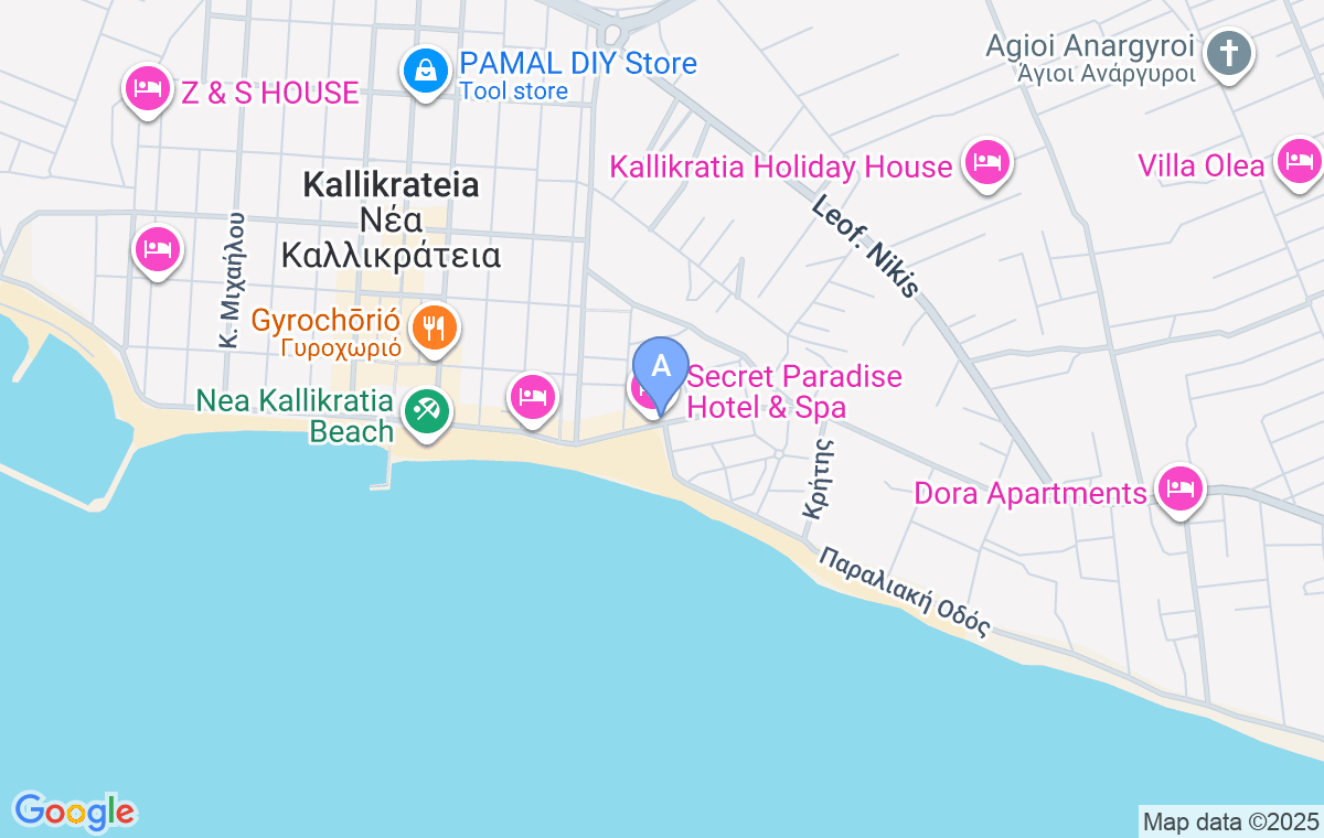 Anika Apartment este situat la 25 km de Ormos Panagias, la 20 km de Nea Plagia și doar la 5 km de una dintre cele mai frumoase plaje din zonă - plaja Sahara. Cel mai apropiat aeroport, Aeroportul Macedonia din Salonic, se află la o distanță de 32 km.