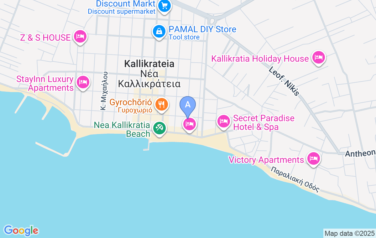 Thoma’s Seaside Studios este o cazare îngrijită și plăcută, situată în Nea Kalikratia, într-o locație excelentă, aproape de mare și de toate facilitățile importante. Este ideală pentru o vacanță completă de vară, oferind tot ce este necesar pentru un sejur confortabil și plin de activități. Plaja din Nea Kalikratia este largă, lungă și nisipoasă, cu adâncime treptată și ape puțin adânci potrivite pentru copii, fiind dotată cu dușuri și cabine de schimb. De-a lungul plajei se întinde o promenadă plină de baruri, restaurante, cafenele și grădini frumos amenajate, care contribuie la atmosfera animată a localității. Un mare avantaj al acestei destinații este apropierea de Salonic, aflat la doar 30 de minute de mers cu mașina, ideal pentru cumpărături, plimbări și vizitarea obiectivelor culturale și istorice.