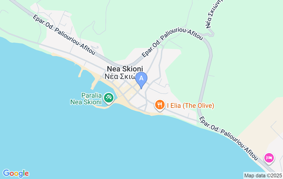 Vila Lemoni Studios este situată într-o stradă liniștită din centrul Nea Skioni și la doar 120 de metri de plajă. Vila oferă cazare în studiouri spațioase cu trei paturi, situate la etajul întâi și dotate cu o chicinetă (cu un mini cuptor și două plăci de încălzire), frigider, baie cu cadă de duș, aer condiționat și televizor LCD. Vila oferă o cazare confortabilă în centrul localității și la o distanță mică de plajă.