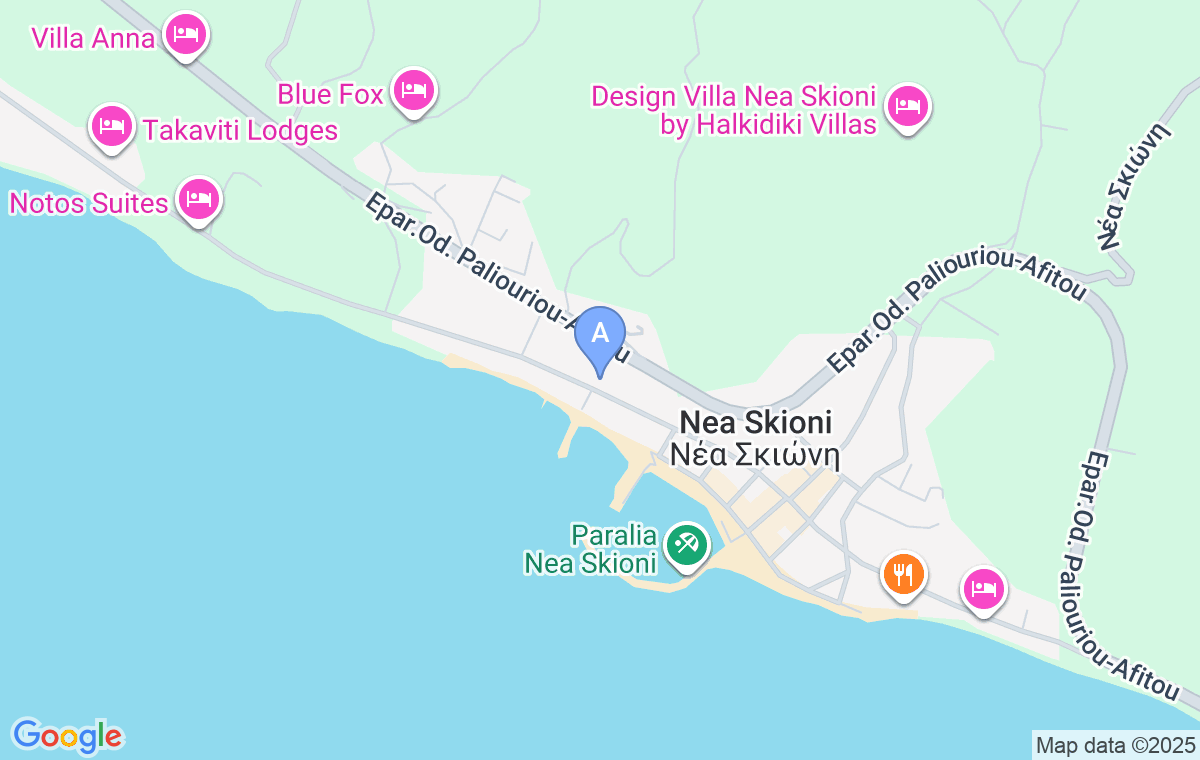 Apartamentul Dariva se află la doar 50 de metri distanță de plajă, în satul de pe litoral Nea Skioni, care se întinde de-a lungul unei plaje nisipoase, în partea de sud a peninsulei Kassandra din Halkidiki, caracterizată de o vegetație luxuriantă, astfel încât acest loc este alegerea perfectă pentru cei care simt nevoia de liniște, relaxare și intimitate.