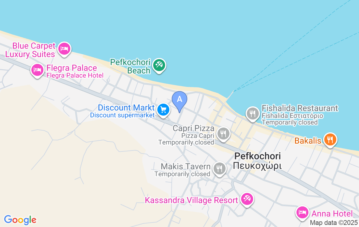 Markovic House se află în faimosul stațiune turistică Pefkohori, pe peninsula Kassandra din Halkidiki. Situat într-o zonă mai liniștită a localității, la doar 130m de plajă, în apropierea marilor supermarketuri, cafenele și restaurante, este alegerea ideală pentru familii și întâlniri prietenoase.