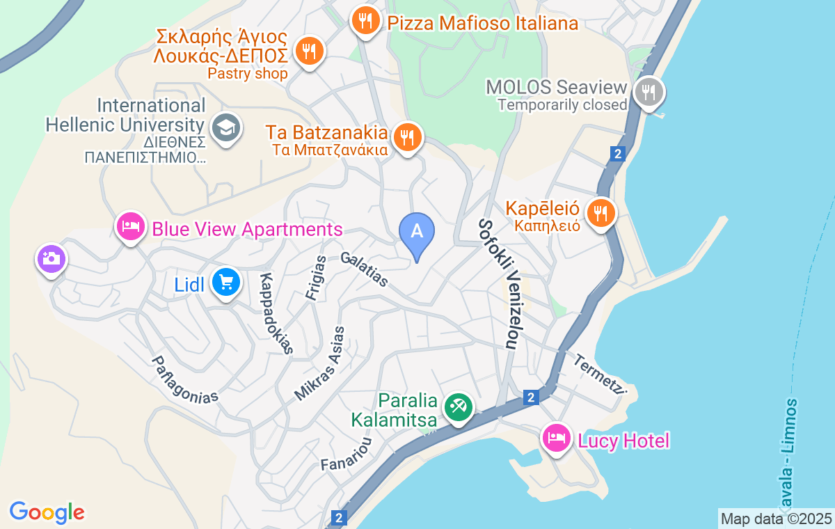 Centrul se află la 3,2 km de cazare, în timp ce restaurantele, mini marketul și cafenelele se află la 550m distanță. Supermarketul Masoutis se află la 900m distanță.