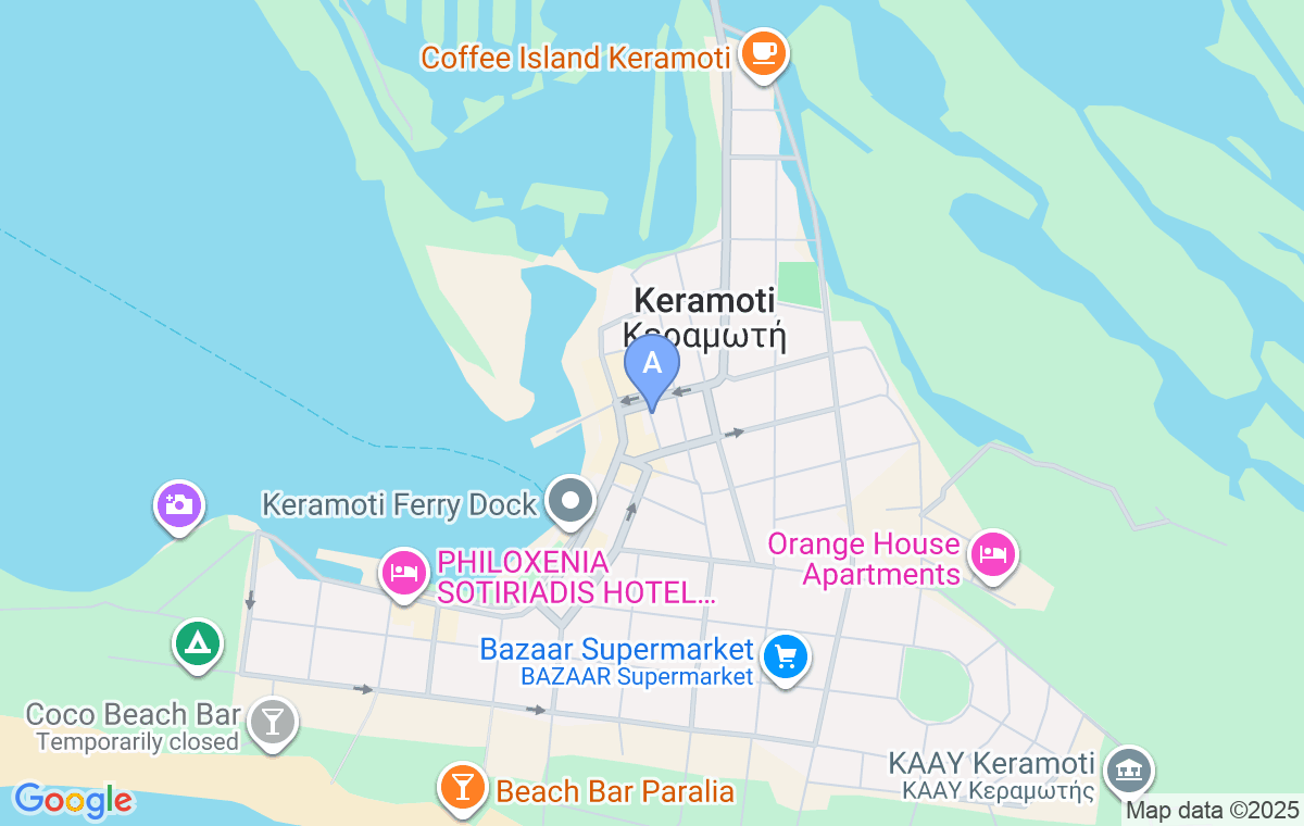 Micul sat autentic de pescari se dezvoltă treptat și crește încet într-un mic oraș tipic grecesc, turistic, de pe malul mării cu aproximativ 2000 de locuitori. Datorită numărului mare de pescari care se mută în acest loc din alte țări, orașul este cunoscut pentru numărul mare de taverne de pește care oferă întotdeauna pește proaspăt în meniul lor, dar și pentru peștele proaspăt care poate fi cumpărat la un preț avantajos în port direct de la pescari. În rest, locul are bancă, poștă, școală primară și gimnazială, precum și două chioșcuri de informații turistice. Unul se află pe docul portului și oferă toate informațiile legate de oraș și împrejurimi, iar celălalt este în partea estică a orașului, în spatele școlii gimnaziale și oferă informații pasionaților de natură, adică tuturor celor interesați de diferite specii de păsări și animale rare, precum și de vegetația care se poate găsi în jurul Keramotiului. Keramoti este, în general, una dintre destinațiile preferate ale iubitorilor de natură.