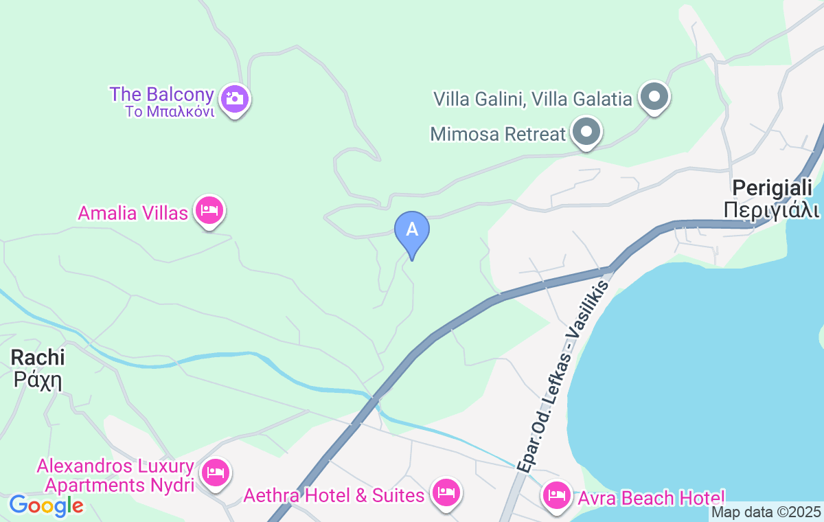 Nidri Hills Villa se află la aproximativ 2 km de centrul localității Nidri și a satului vecin Perigiali, în timp ce Neochori este la 7 km distanță, iar Lefkas la 21 km. Cea mai apropiată plajă din Nidri este la aproximativ 1.5 km distanță, iar plaja Pascha la 3 km. Cel mai apropiat aeroport este Aktion din Preveza, la o distanță de 36 km de cazare.