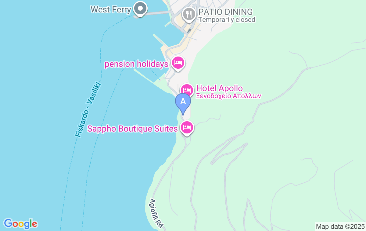 După ce intrați în Vasiliki, la prima intersecție mare, virați la dreapta și conduceți până la promenadă. Străbateți promenada și centrul și continuați să conduceți de-a lungul țărmului încă aproximativ 500m către plaja Agiofili, până când veți vedea vila într-o curte mică și frumos amenajată, pe partea stângă.