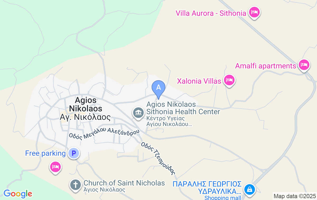Casa Rizes se află într-o zonă liniștită a Agios Nikolaos din Sitonia și oferă apartamente spațioase modern amenajate, precum și o curte frumos amenajată, perfectă pentru relaxare. Agios Nikolaos încântă cu străzi înguste pietruite, case cu fațade din piatră, abundentă în flori, precum și o piață frumoasă cu taverne, patiserie, pizzerie și cafenele, care creează o atmosferă unică. Plaja cea mai apropiată este la aproximativ 3 km distanță de proprietate.