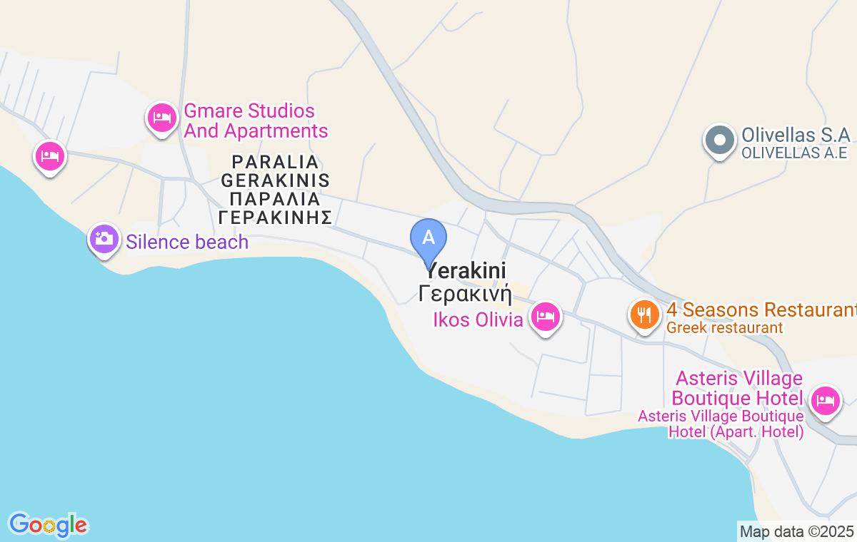Paschalia Studios privește plaja Gerakini, la intrarea în peninsula Sithonia din Halkidiki.