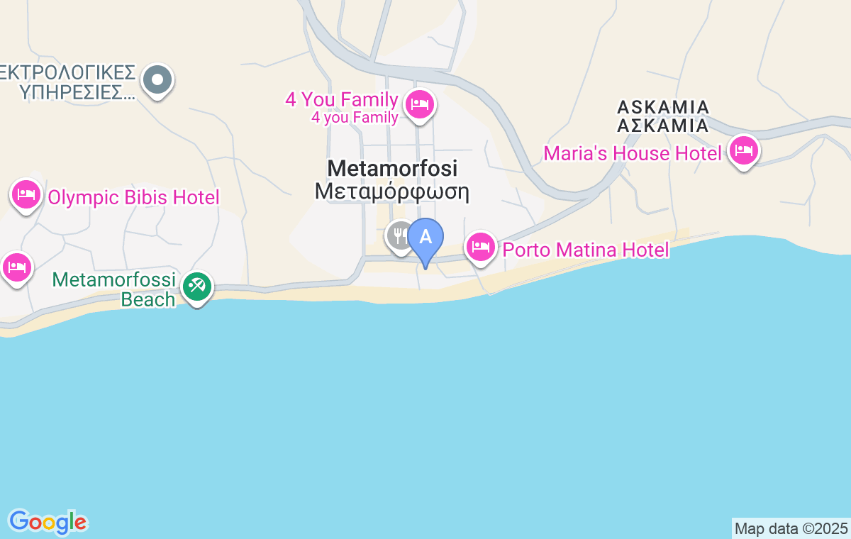 Golden Beach Hotel se află în stațiunea familială Metamorfosi, situată în partea de vest a peninsulei Sithonia, la doar 30m de cea mai apropiată plajă cu bar pe plajă.