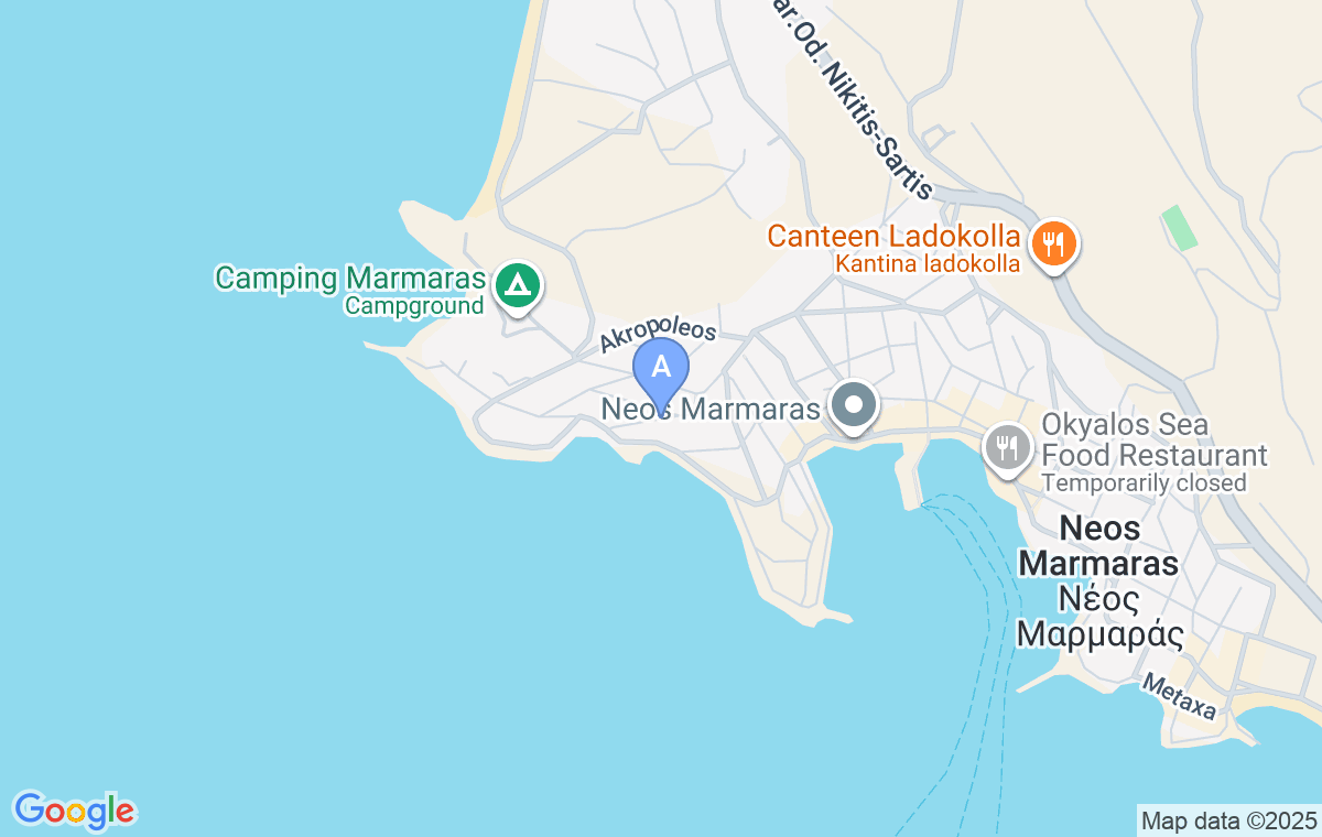 Veți găsi cazarea într-o stradă deasupra hotelului Marmaras, iar cel mai bine este să virați de pe drumul principal (dinspre Nikititi) la prima intrare în Neos Marmaras.