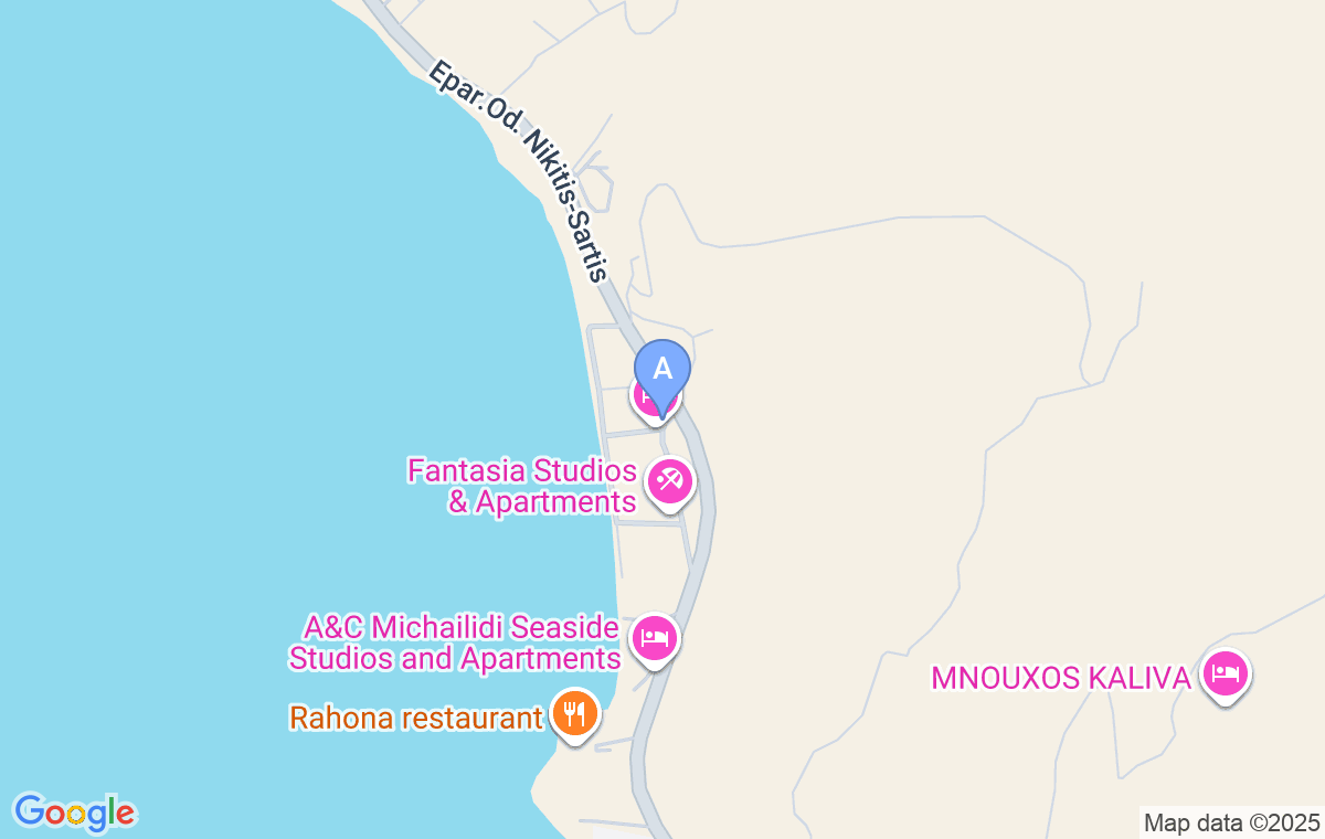 Dacă veniți dinspre Salonic, veți găsi unitatea de cazare dacă la trecerea pe lângă taverna Drosia faceți dreapta (aproximativ 2km după ce treceți de campingul Castello).