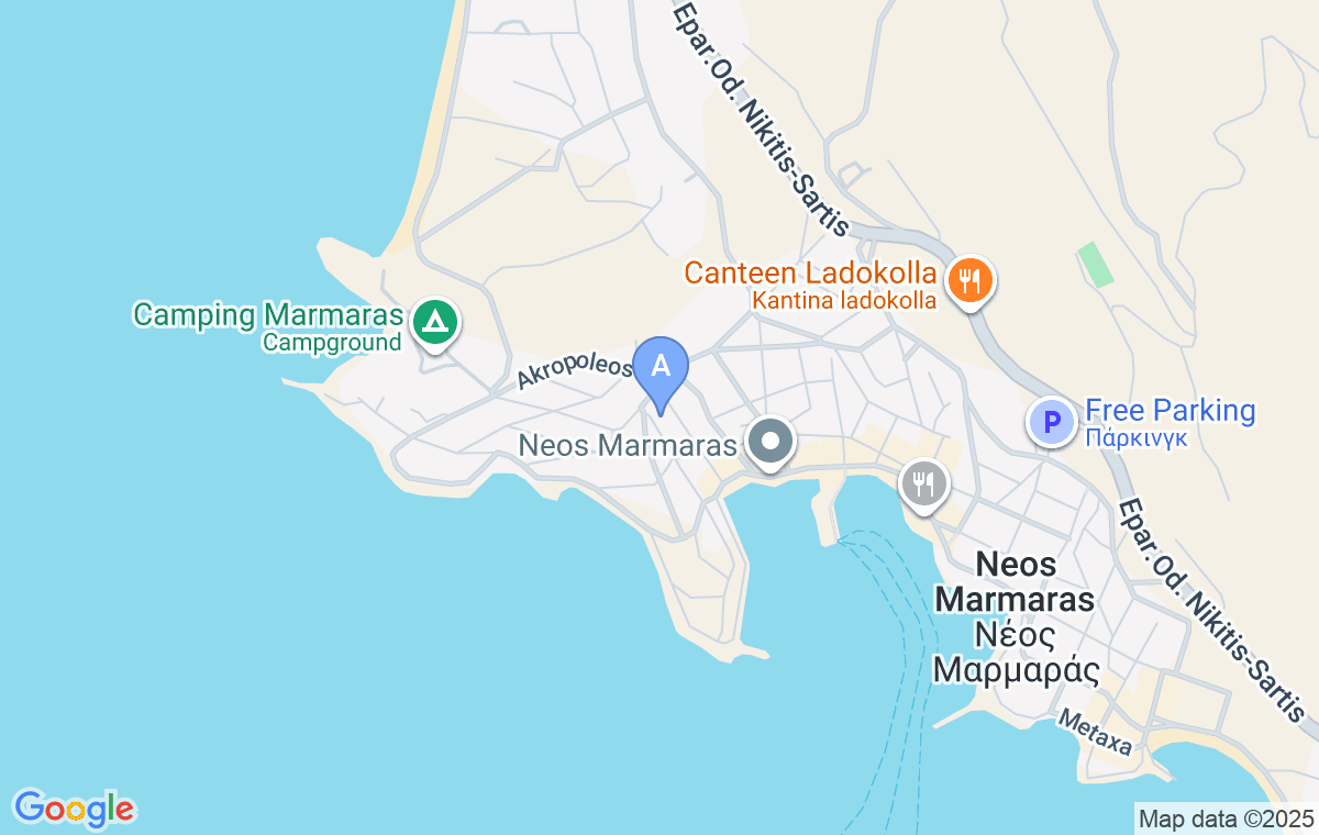 Vei ajunge cel mai repede la cazare dacă, de pe drumul principal (dinspre Nikiti), virezi la prima intrare în Neos Marmaras și continui pe stradă drept aproximativ 500m.