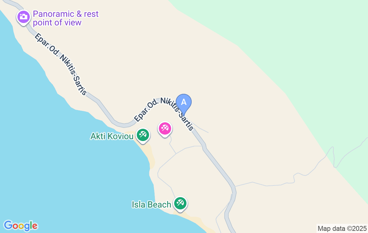 Se află la doar 270m de plaja Koviu și la 5km de centrul Nikiti și de supermarketul Masutis.