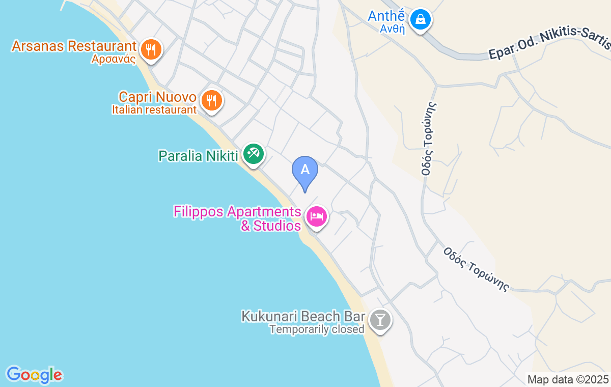 Cazarea se află în Nikiti, la doar 10m de plaja cu nisip a orașului.