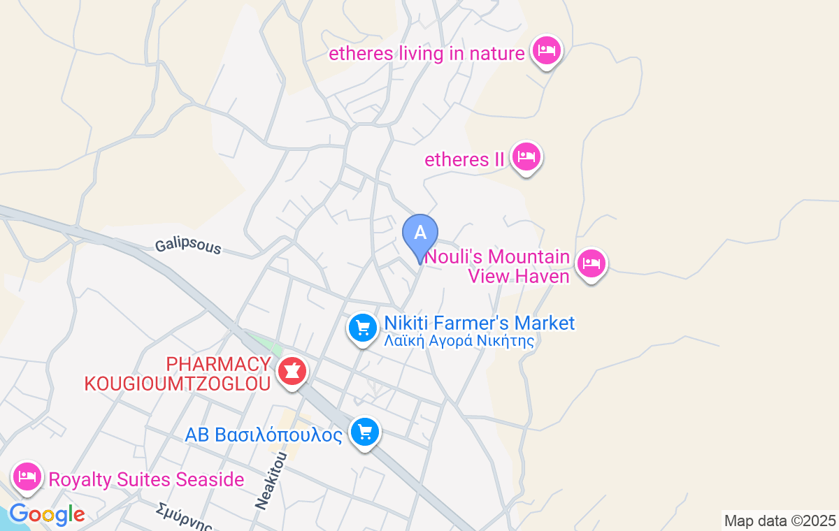 Pinehouse King Suite se află într-o zonă veche a orașului Nikiti, care are o atmosferă romantică în orele serii, chiar la începutul peninsulei Sithonia, la intersecția dintre coasta de vest și cea de est, iar cea mai apropiată plajă se află la 2km distanță.