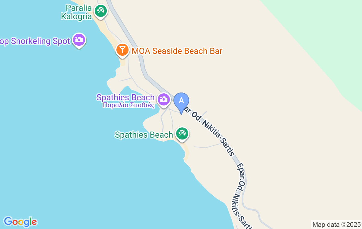 Nikiti Spathies Beach Apartments se află în afara localității Nikiti, la începutul peninsulei Sithonia, la intersecția dintre coasta vestică și cea estică. Acest loc de cazare este situat la 100m de plajă.