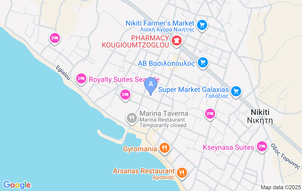 Vila Magdalena este situată în celebrul oraș turistic Nikiti, pe peninsula Sithonia, în Halkidiki. Amplasată în partea centrală, în apropierea supermarketurilor, cafenelelor și restaurantelor, la doar 500 de metri de prima plajă, reprezintă locul ideal pentru relaxare și distracție. Oferă o ambianță confortabilă, într-o atmosferă plăcută.