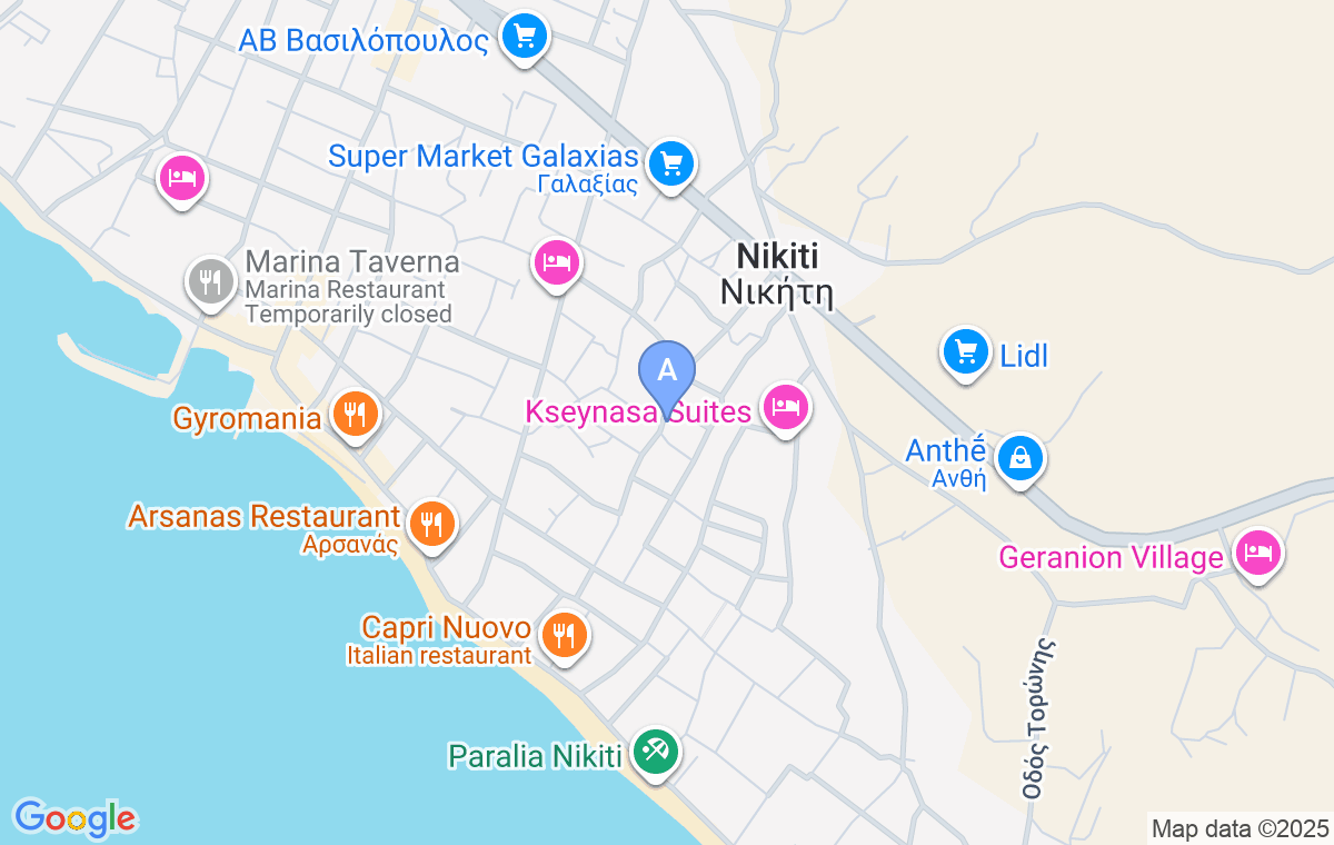Cozy Nest Apartment este situat în renumitul stațiune turistică Nikiti, de pe peninsula Sithonia, din Halkidiki. Amplasat în centrul orașului, în apropierea supermarketurilor, magazinelor și cafenelelor, este alegerea ideală pentru cei care caută o vacanță plăcută într-o atmosferă veritabilă de vară. Plaja cu nisip și marea turcoaz se află la doar 500 de metri de cazare.
