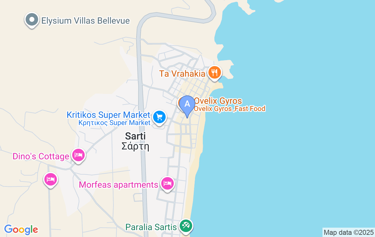Cea mai ușoară modalitate de a ajunge la cazare este să ajungeți în parcarea publică, apoi să virați la stânga pe ultima stradă spre plajă, care duce către vechiul Sarti. După aproximativ 100 de metri, veți vedea Anna Apartments pe partea stângă.