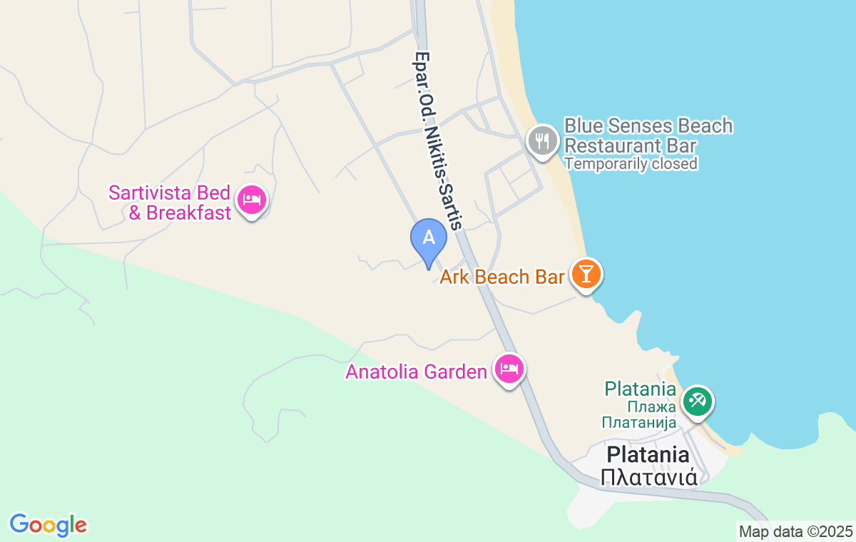Nature View Studios se află într-o zonă nouă a Sartiului, pe coasta estică a Sitoniei, la 450m distanță de cea mai frumoasă parte a plajei sale cu nisip.