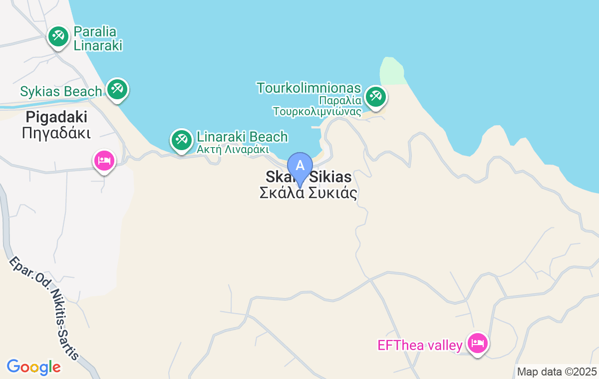 Casa Aggelina este ușor de găsit. După ce virați de pe șosea spre plaja Sikija, mergeți drept până la bifurcația drumurilor. Drumul spre stânga duce către plaja Sikija, iar cel spre dreapta și în sus către plaja Pigadaki. Treceți de prima golf și puțin înainte de plaja Pigadaki, veți vedea pe partea dreaptă un drum care se îndreaptă în sus, dar și un indicator pentru a vira către casă. Casa Aggelina se află la capătul acelei străzi.