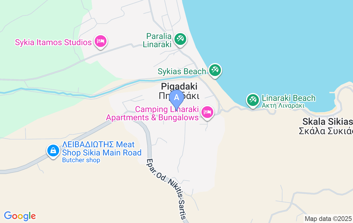 Cazarea Anthis Garden se află la aproximativ 350 m de plaja Sikia. Curtea este frumos amenajată, cochetă și oferă liniște și odihnă adevărată, deoarece dispune doar de trei unități, iar amabila proprietară este întotdeauna la dispoziție. În incinta curții există parcare privată.