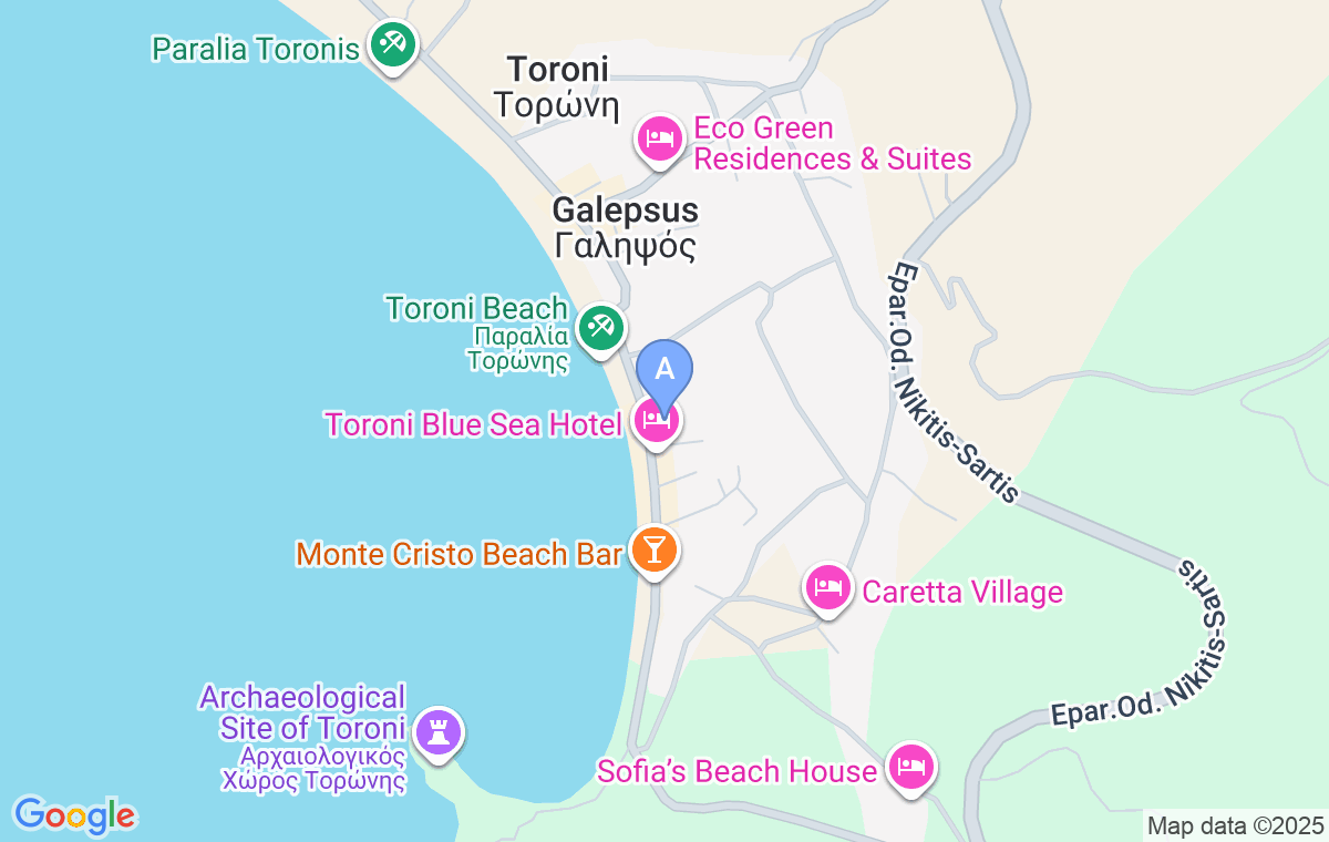 Pentru a ajunge la cazare, trebuie să mergeți pe strada principală de-a lungul mării. Când ajungeți la Hotelul Toroni Blue Sea, în dreapta sa se află și Toroni Paradise.
